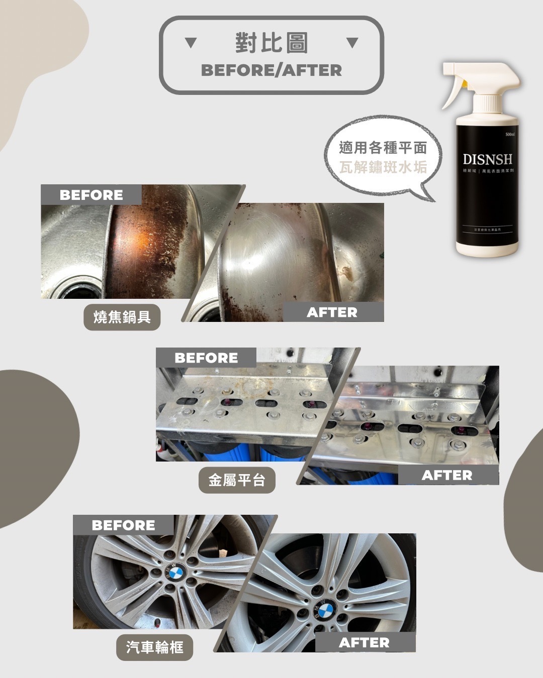 有效去除鏽斑、水垢、金屬痕跡、礦物附著